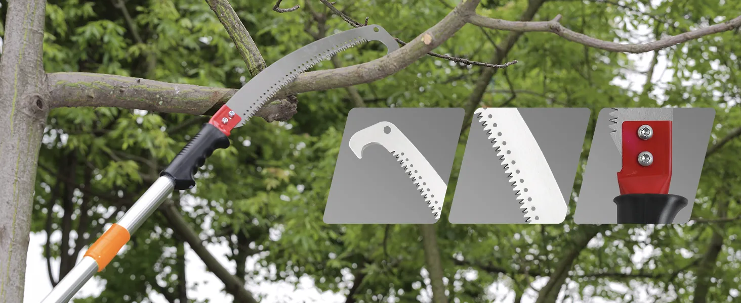 • У ручці використовуються подвійні болти, що забезпечують стійкість пили та жердини.